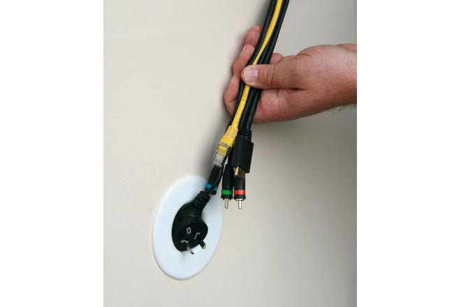 CableClear is quick and easy to install in a new or existing wall. It only takes a few minutes and you don't need any special DIY skills or extra tools; a hole saw, plumb bob and nose cone are all included.