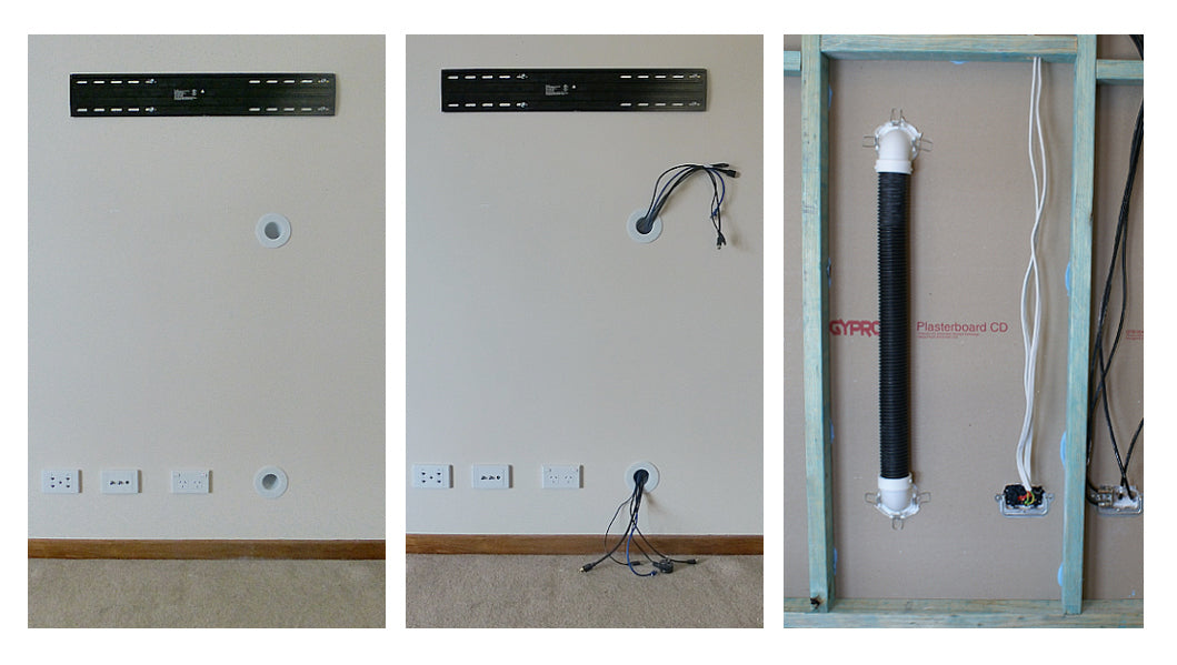 The 50mm (2") diameter hose allows most cables to be gravity fed through without needing any wire pulling rods. USA, Australian and Euro wall plugs generally fit right through so there is no cutting cables and voiding your TV warranty.